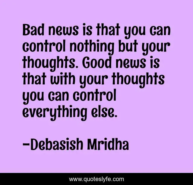 "Debasish Mridha Quotes." Quoteslyfe.com, 2025. Sun. 07 Dec. 2025. <https://www.quoteslyfe.com/quote/Bad-news-is-that-you-can-control-206645>.