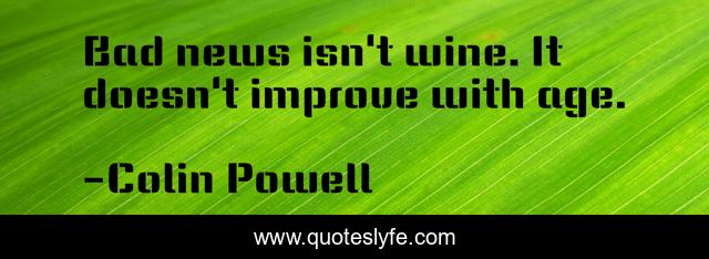"Colin Powell Quotes." Quoteslyfe.com, 2025. Sun. 07 Dec. 2025. <https://www.quoteslyfe.com/quote/Bad-news-isn-t-wine-It-doesn-296664>.