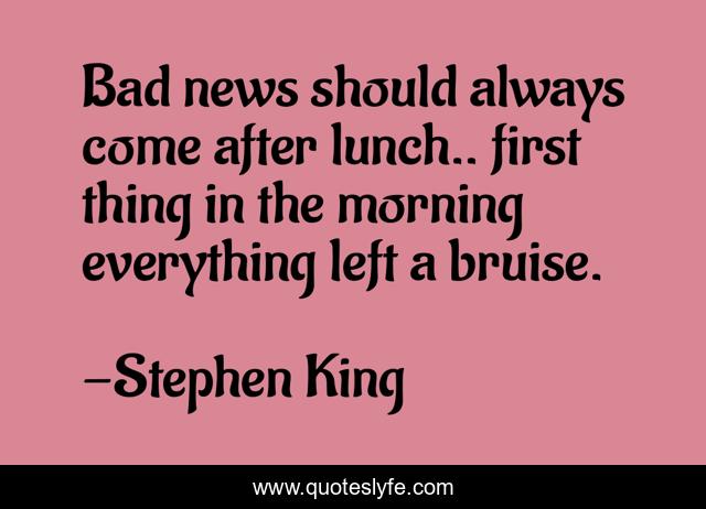 "Stephen King Quotes." Quoteslyfe.com, 2025. Sat. 06 Dec. 2025. <https://www.quoteslyfe.com/quote/Bad-news-should-always-come-after-lunch-76126>.