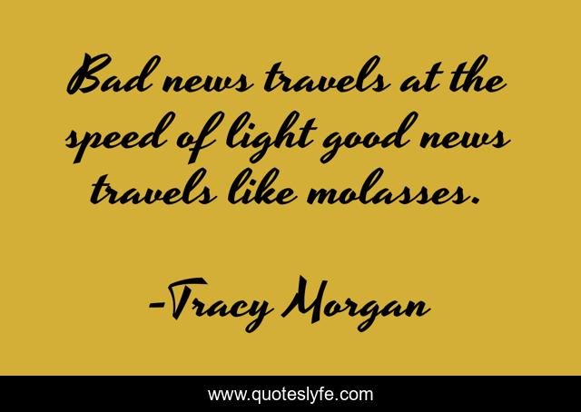 This page presents the quote "Bad news travels at the speed of light good news travels like molasses.". Author of this quote is Tracy Morgan. This quote is about light, speed, news,.