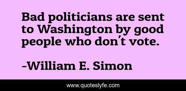 This page presents the quote "Bad politicians are sent to Washington by good people who don't vote.". Author of this quote is William E. Simon. This quote is about good, people, good people,.