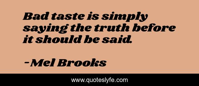 This page presents the quote "Bad taste is simply saying the truth before it should be said.". Author of this quote is Mel Brooks. This quote is about saying, bad, said,.