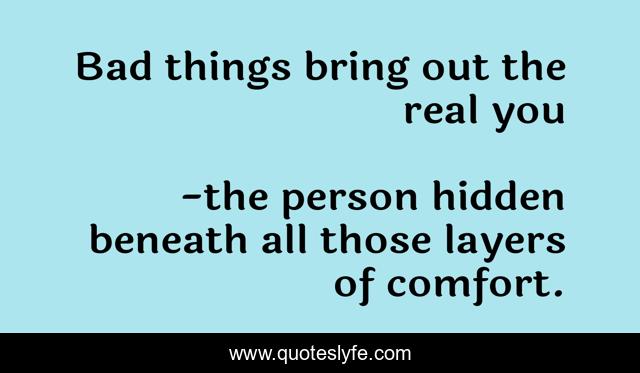"the person hidden beneath all those layers of comfort. Quotes." Quoteslyfe.com, 2025. Fri. 05 Dec. 2025. <https://www.quoteslyfe.com/quote/Bad-things-bring-out-the-real-you-106252>.