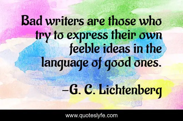 This page presents the quote "Bad writers are those who try to express their own feeble ideas in the language of good ones.". Author of this quote is G. C. Lichtenberg. .