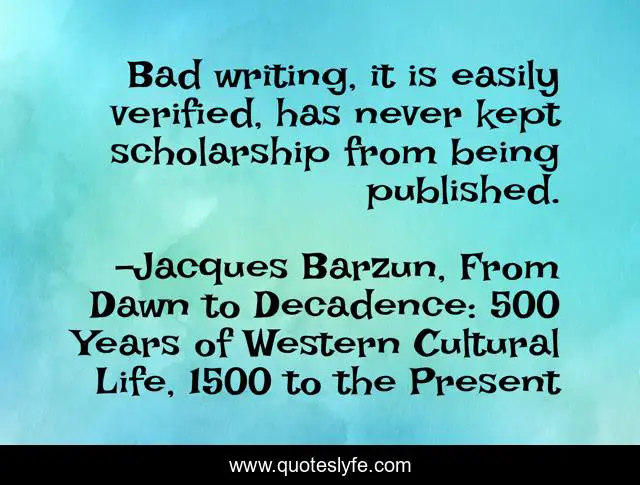"Jacques Barzun, From Dawn to Decadence: 500 Years of Western Cultural Life, 1500 to the Present Quotes." Quoteslyfe.com, 2025. Sat. 06 Dec. 2025. <https://www.quoteslyfe.com/quote/Bad-writing-it-is-easily-verified-has-41469>.