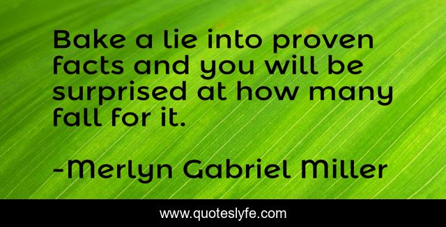 "Merlyn Gabriel Miller Quotes." Quoteslyfe.com, 2025. Sat. 06 Dec. 2025. <https://www.quoteslyfe.com/quote/Bake-a-lie-into-proven-facts-and-238708>.