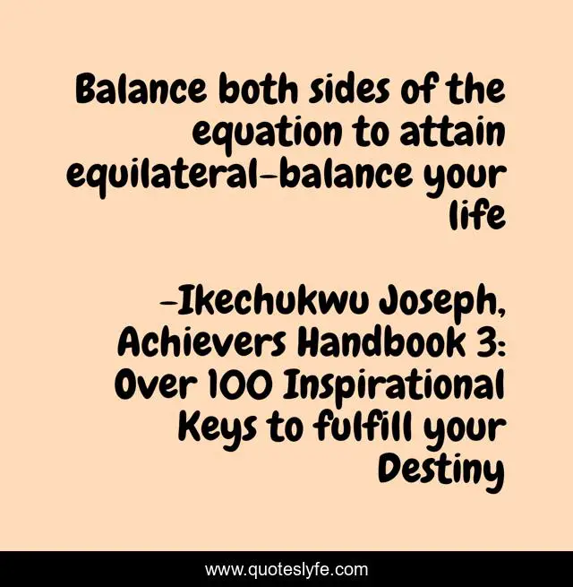 "Ikechukwu Joseph, Achievers Handbook 3: Over 100 Inspirational Keys to fulfill your Destiny Quotes." Quoteslyfe.com, 2025. Sun. 07 Dec. 2025. <https://www.quoteslyfe.com/quote/Balance-both-sides-of-the-equation-to-84847>.