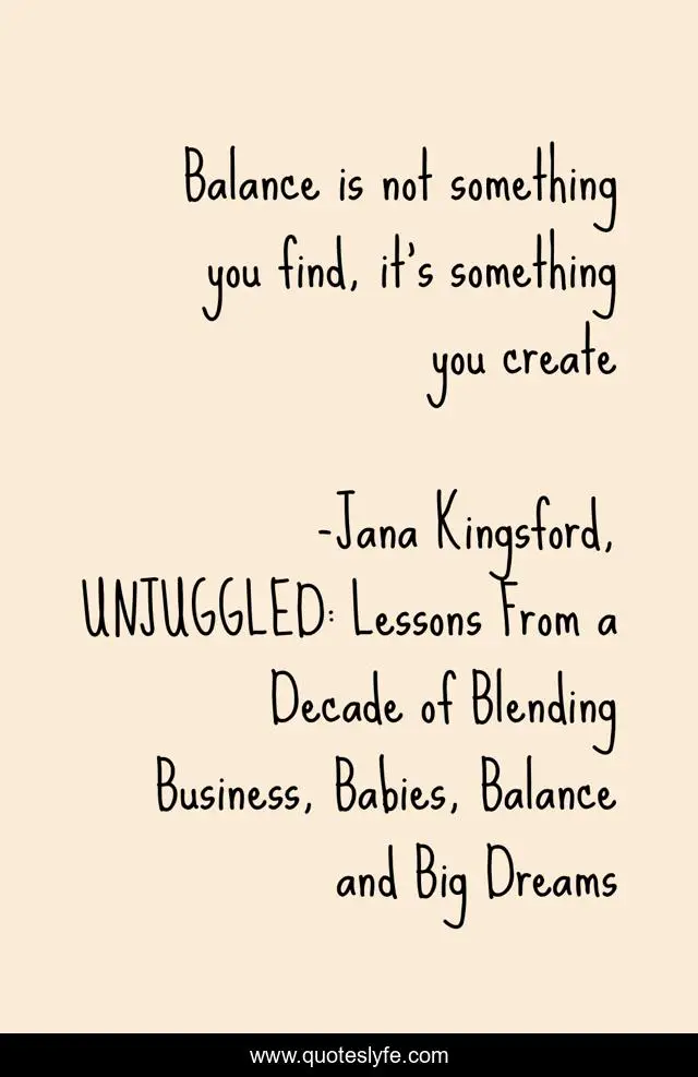 "Jana Kingsford, UNJUGGLED: Lessons From a Decade of Blending Business, Babies, Balance and Big Dreams Quotes." Quoteslyfe.com, 2025. Fri. 05 Dec. 2025. <https://www.quoteslyfe.com/quote/Balance-is-not-something-you-find-it-252194>.