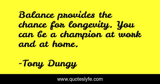 This page presents the quote "Balance provides the chance for longevity. You can be a champion at work and at home.". Author of this quote is Tony Dungy. This quote is about home, balance, champion,.