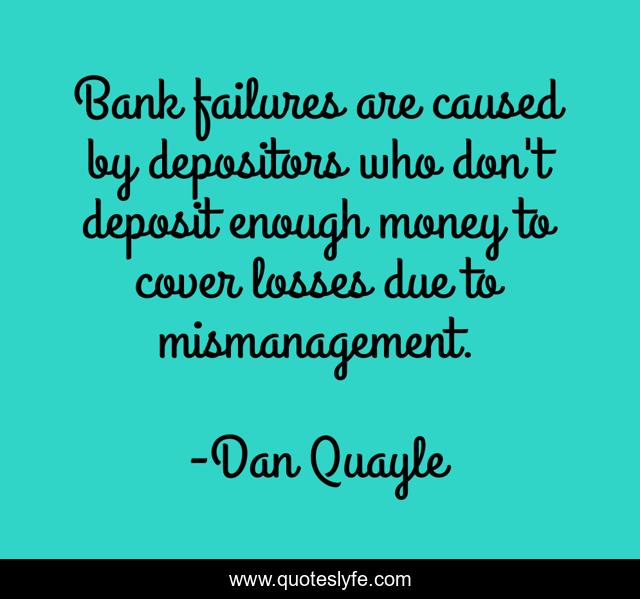 This page presents the quote "Bank failures are caused by depositors who don't deposit enough money to cover losses due to mismanagement.". Author of this quote is Dan Quayle. This quote is about enough, cover, bank,.