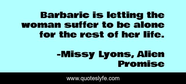 "Missy Lyons, Alien Promise Quotes." Quoteslyfe.com, 2025. Sat. 06 Dec. 2025. <https://www.quoteslyfe.com/quote/Barbaric-is-letting-the-woman-suffer-to-139325>.