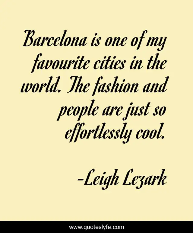 "Leigh Lezark Quotes." Quoteslyfe.com, 2025. Sat. 06 Dec. 2025. <https://www.quoteslyfe.com/quote/Barcelona-is-one-of-my-favourite-cities-287702>.