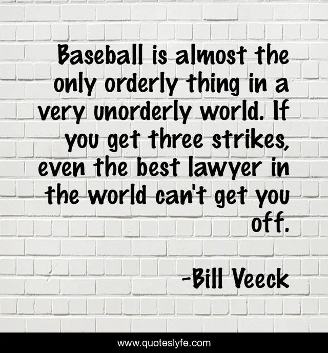 This page presents the quote "Baseball is almost the only orderly thing in a very unorderly world. If you get three strikes, even the best lawyer in the world can't get you off.". Author of this quote is Bill Veeck. .