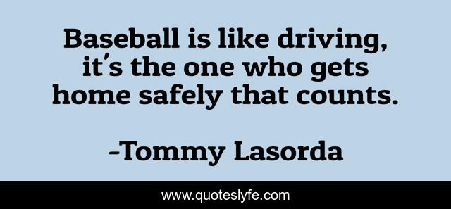 This page presents the quote "Baseball is like driving, it's the one who gets home safely that counts.". Author of this quote is Tommy Lasorda. This quote is about baseball, like, driving,.
