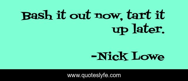 This page presents the quote "Bash it out now, tart it up later.". Author of this quote is Nick Lowe. This quote is about inspirational-attitude, writing-method,.