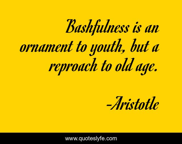 This page presents the quote "Bashfulness is an ornament to youth, but a reproach to old age.". Author of this quote is Aristotle. This quote is about youth, old, old age,.