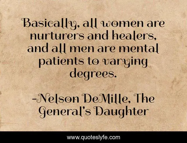 "Nelson DeMille, The General's Daughter Quotes." Quoteslyfe.com, 2025. Tue. 09 Dec. 2025. <https://www.quoteslyfe.com/quote/Basically-all-women-are-nurturers-and-healers-6746>.