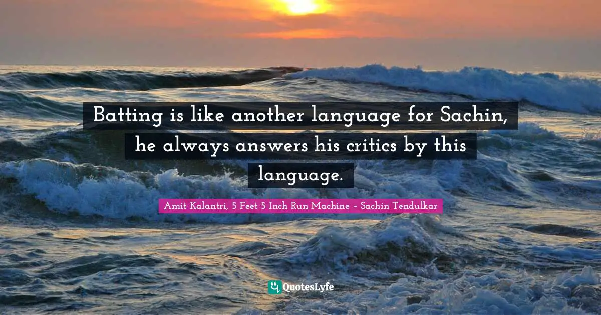 "Amit Kalantri, 5 Feet 5 Inch Run Machine – Sachin Tendulkar Quotes." Quoteslyfe.com, 2025. Wed. 24 Dec. 2025. <https://www.quoteslyfe.com/quote/Batting-is-like-another-language-for-Sachin-197726>.