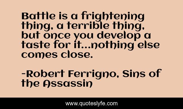 This page presents the quote "Battle is a frightening thing, a terrible thing, but once you develop a taste for it…nothing else comes close.". Author of this quote is Robert Ferrigno, Sins of the Assassin. .