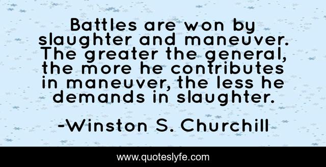 This page presents the quote "Battles are won by slaughter and maneuver. The greater the general, the more he contributes in maneuver, the less he demands in slaughter.". Author of this quote is Winston S. Churchill. .