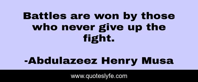 This page presents the quote "Battles are won by those who never give up the fight.". Author of this quote is Abdulazeez Henry Musa. .