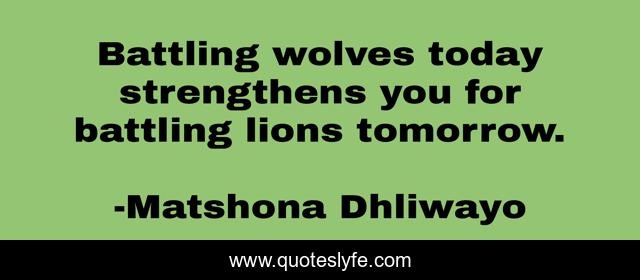 "Matshona Dhliwayo Quotes." Quoteslyfe.com, 2025. Mon. 08 Dec. 2025. <https://www.quoteslyfe.com/quote/Battling-wolves-today-strengthens-you-for-battling-83674>.