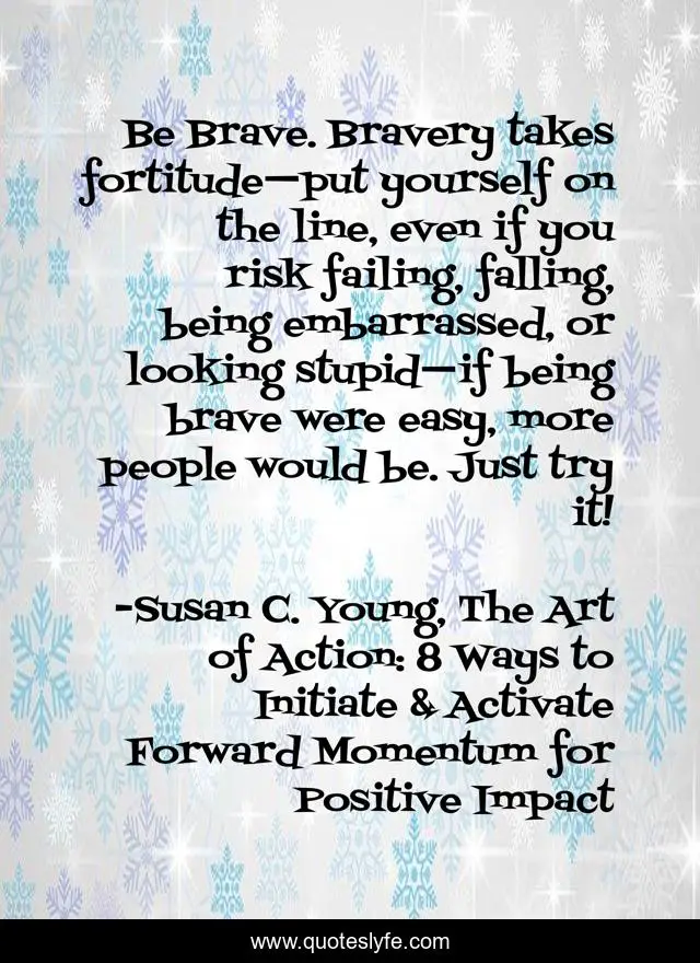 "Susan C. Young, The Art of Action: 8 Ways to Initiate & Activate Forward Momentum for Positive Impact Quotes." Quoteslyfe.com, 2025. Mon. 08 Dec. 2025. <https://www.quoteslyfe.com/quote/Be-Brave-Bravery-takes-fortitude-put-yourself-233458>.