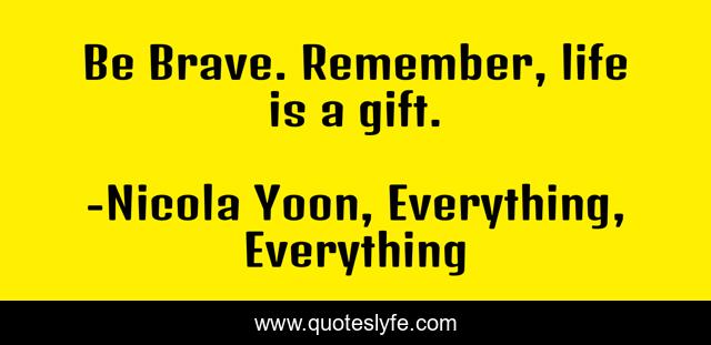 "Nicola Yoon, Everything, Everything Quotes." Quoteslyfe.com, 2025. Tue. 09 Dec. 2025. <https://www.quoteslyfe.com/quote/Be-Brave-Remember-life-is-a-gift-212427>.