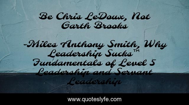 "Miles Anthony Smith, Why Leadership Sucks™ Fundamentals of Level 5 Leadership and Servant Leadership Quotes." Quoteslyfe.com, 2025. Fri. 05 Dec. 2025. <https://www.quoteslyfe.com/quote/Be-Chris-LeDoux-Not-Garth-Brooks-194320>.