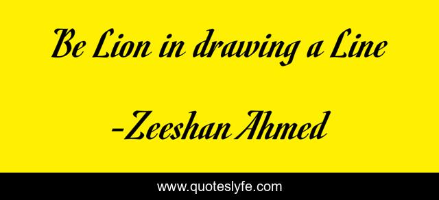 This page presents the quote "Be Lion in drawing a Line". Author of this quote is Zeeshan Ahmed. This quote is about confident, bravery, innovative,.