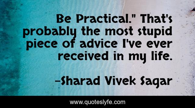 This page presents the quote "Be Practical." That's probably the most stupid piece of advice I've ever received in my life.". Author of this quote is Sharad Vivek Sagar. This quote is about lessons, life, sharad-vivek-sagar, inspirational, positive, advice, motivational, confidence, practical,.