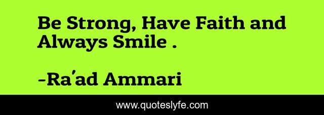 "Ra'ad Ammari Quotes." Quoteslyfe.com, 2025. Sat. 06 Dec. 2025. <https://www.quoteslyfe.com/quote/Be-Strong-Have-Faith-and-Always-Smile-195023>.