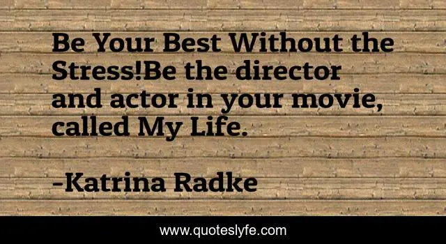 This page presents the quote "Be Your Best Without the Stress!Be the director and actor in your movie, called My Life.". Author of this quote is Katrina Radke. This quote is about therapist, olympic-swimmer, motivational-speaker,.