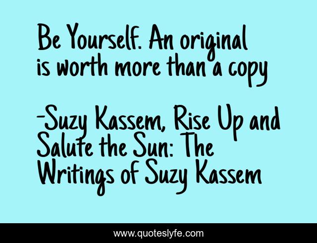 "Suzy Kassem, Rise Up and Salute the Sun: The Writings of Suzy Kassem Quotes." Quoteslyfe.com, 2025. Sat. 06 Dec. 2025. <https://www.quoteslyfe.com/quote/Be-Yourself-An-original-is-worth-more-144181>.