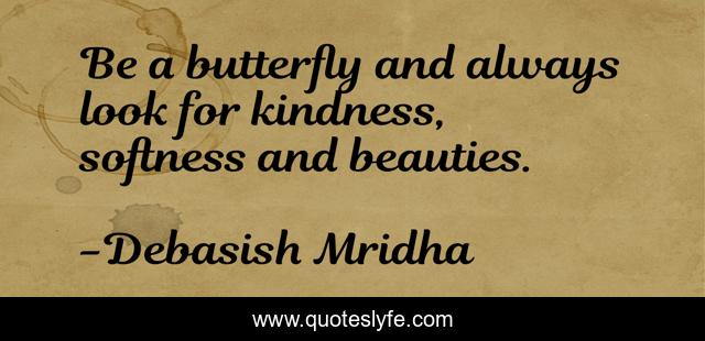 This page presents the quote "Be a butterfly and always look for kindness, softness and beauties.". Author of this quote is Debasish Mridha. This quote is about life, love, knowledge, inspirational, intelligence, philosophy, wisdom, quotes, affection,.