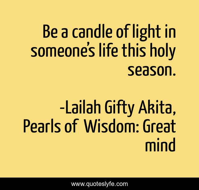"Lailah Gifty Akita, Pearls of Wisdom: Great mind Quotes." Quoteslyfe.com, 2025. Sun. 07 Dec. 2025. <https://www.quoteslyfe.com/quote/Be-a-candle-of-light-in-someone-118571>.