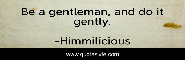 This page presents the quote "Be a gentleman, and do it gently.". Author of this quote is Himmilicious. .