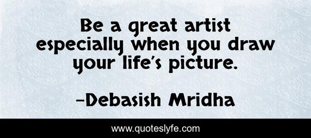 This page presents the quote "Be a great artist especially when you draw your life’s picture.". Author of this quote is Debasish Mridha. This quote is about life, artist, philosophy, debasish-mridha, quotes, be-a-great-artist, inspirational, enthusiasm, debasish-mridha-m-d,.