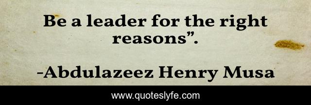 "Abdulazeez Henry Musa Quotes." Quoteslyfe.com, 2025. Fri. 05 Dec. 2025. <https://www.quoteslyfe.com/quote/Be-a-leader-for-the-right-reasons-257962>.