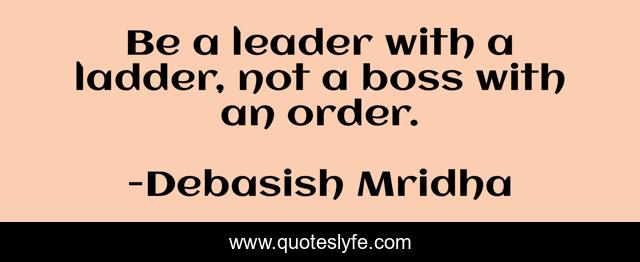 This page presents the quote "Be a leader with a ladder, not a boss with an order.". Author of this quote is Debasish Mridha. This quote is about a-boss-with-an-order, philosophy, debasish-mridha, boss, quotes, debasish-mridha-md, inspirational, don-t-be-a-boss, enthusiasm,.