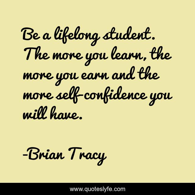 This page presents the quote "Be a lifelong student. The more you learn, the more you earn and the more self-confidence you will have.". Author of this quote is Brian Tracy. This quote is about life, self-confidence, learning,.