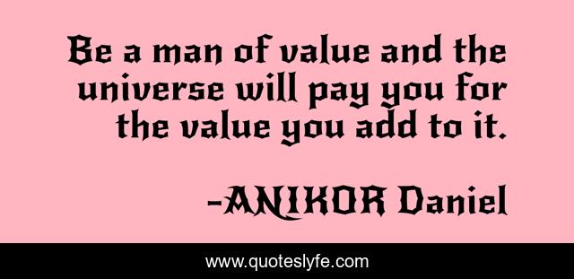 This page presents the quote "Be a man of value and the universe will pay you for the value you add to it.". Author of this quote is ANIKOR Daniel. This quote is about positive, confidence, motivational, optimistic,.