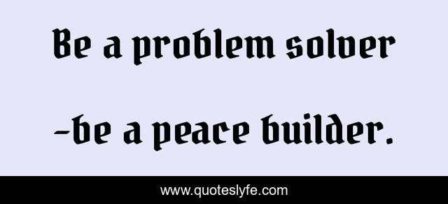 "be a peace builder. Quotes." Quoteslyfe.com, 2025. Sat. 06 Dec. 2025. <https://www.quoteslyfe.com/quote/Be-a-problem-solver-73625>.