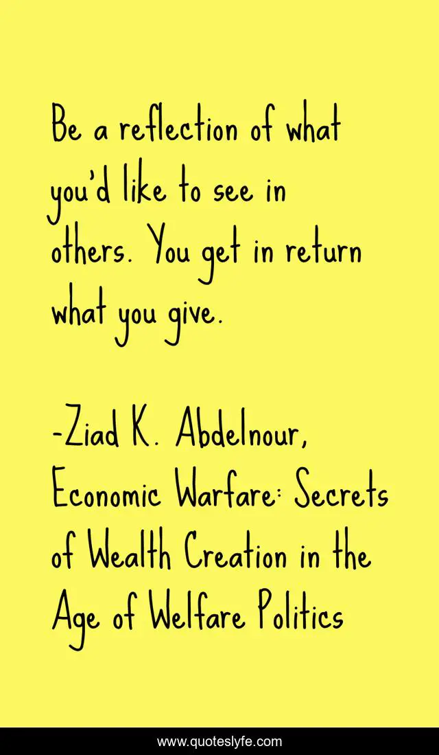 "Ziad K. Abdelnour, Economic Warfare: Secrets of Wealth Creation in the Age of Welfare Politics Quotes." Quoteslyfe.com, 2025. Fri. 05 Dec. 2025. <https://www.quoteslyfe.com/quote/Be-a-reflection-of-what-you-d-228070>.