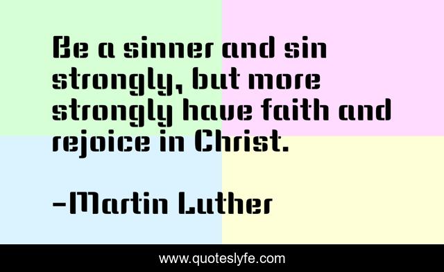 This page presents the quote "Be a sinner and sin strongly, but more strongly have faith and rejoice in Christ.". Author of this quote is Martin Luther. This quote is about christ, sin, sinner,.