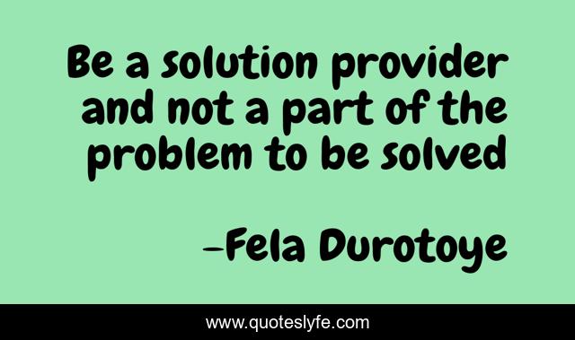 This page presents the quote "Be a solution provider and not a part of the problem to be solved". Author of this quote is Fela Durotoye. This quote is about leadership, value,.