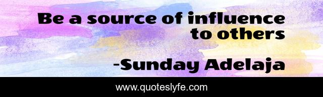This page presents the quote "Be a source of influence to others". Author of this quote is Sunday Adelaja. This quote is about life, blessing, finance, influential, money, work, influence, job, purpose,.