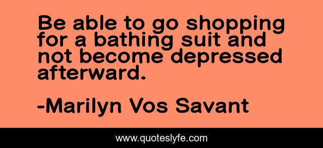 This page presents the quote "Be able to go shopping for a bathing suit and not become depressed afterward.". Author of this quote is Marilyn Vos Savant. This quote is about funny, comedy,.