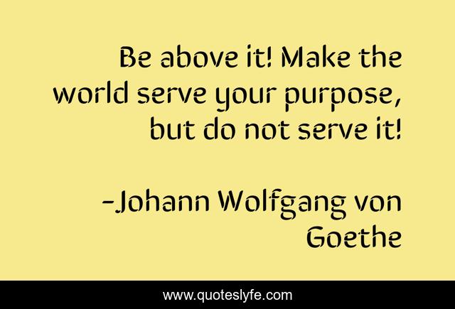 This page presents the quote "Be above it! Make the world serve your purpose, but do not serve it!". Author of this quote is Johann Wolfgang von Goethe. This quote is about world, serve, purpose,.