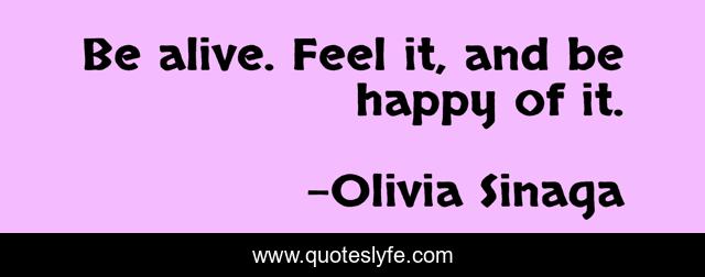 This page presents the quote "Be alive. Feel it, and be happy of it.". Author of this quote is Olivia Sinaga. .